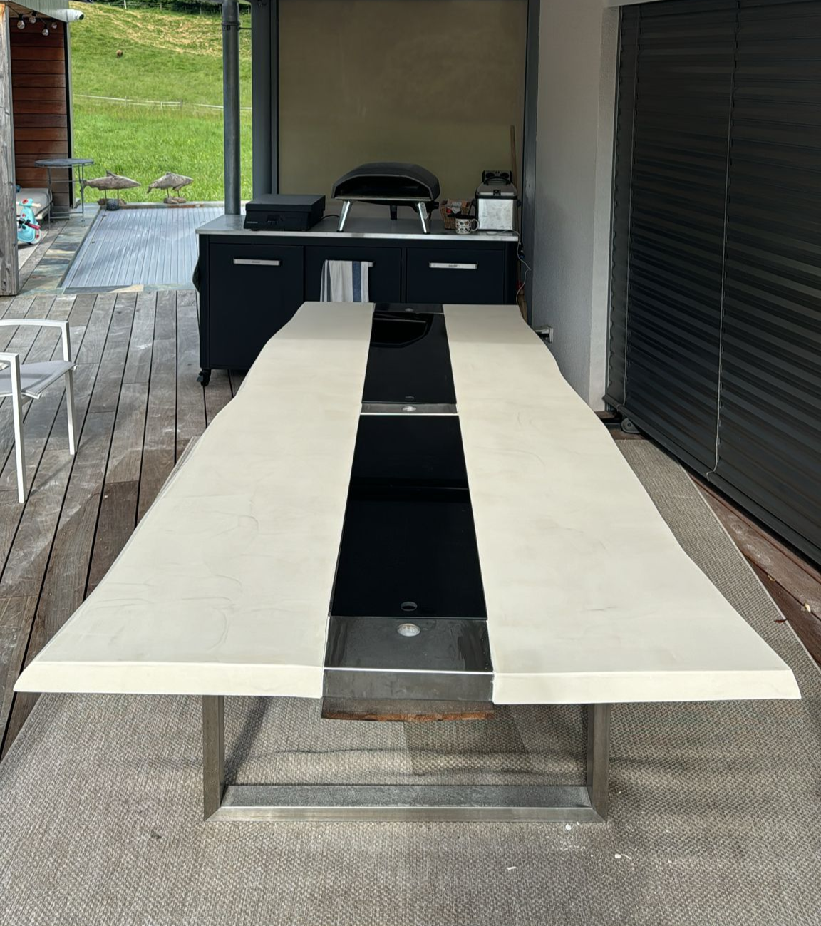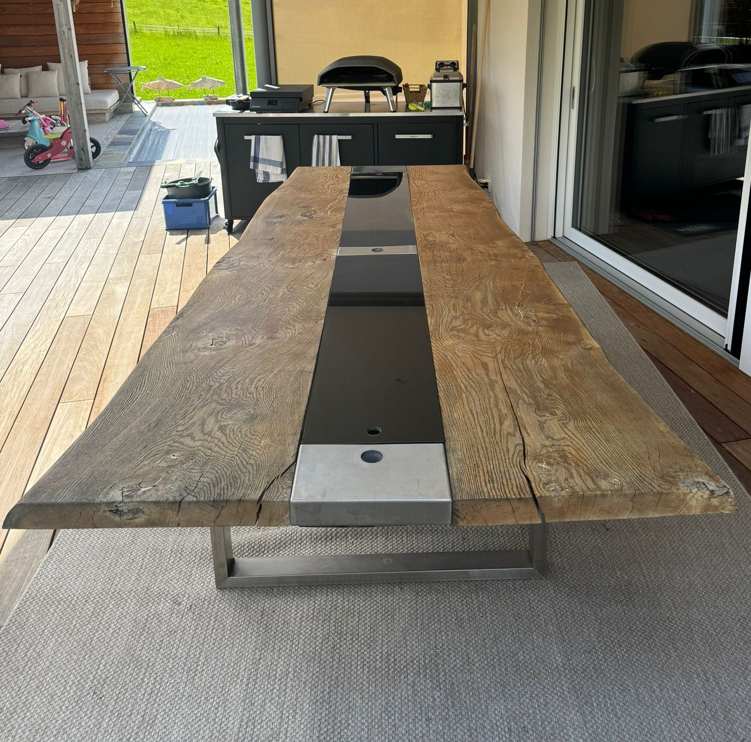 Dimensions, finitions et matériaux au choix : plateau en MDF travaillé avec soin, pieds en métal/bois solides et élégants, taille sur demande pour un rendu parfaitement adapté à votre intérieur.